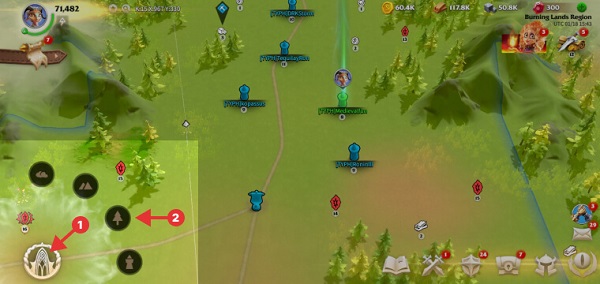 为此,您需按住按钮一秒,随后会弹出4个功能。这4个功能从上至下排列,前两个功能能直接跳转到世界地图最高级别的缩放界面。之后,您可利用左侧选项,仅查看特定元素,比如道路、联盟资源、标记等。