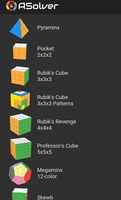 用相机扫描您的谜题,ASolver将引导您在几分钟内解决您的谜题!对于2x2x2,2x2x3,2x3x3,Skewb和Pyraminx,它能以最少的步数找到解决方案。