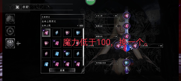 3、三条生命属性。两条物理攻击属性。一条魔力上限属性。当魔力低于100时,替换为一条魔力回复属性(即3生命、2物理攻击、1魔力回复)。若血量低于1800,再替换一条属性为魔力回复(变为2生命、2物理攻击、2魔力回复)。当血量低于1400时,替换一条属性为回血属性(成为1生命、2物理攻击、2魔力回复、1回血)。要是血量低于1000,再替换一条属性为回血属性,最终呈现2物理攻击、2魔力回复、2回血的属性搭配。