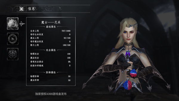 4、点击左上角玫瑰花按钮可查看角色信息,玩家在这里可以给角色穿戴装备武器、以及升级技能等;