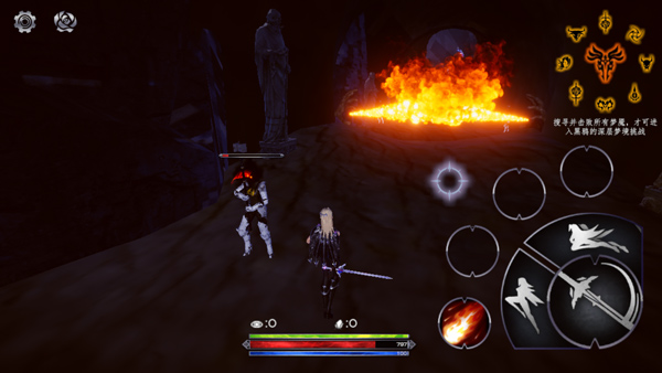 3、看完后即可进入游戏,游戏采用了经典的横版操作,屏幕左边控制移动,右边则是攻击、技能等键位;