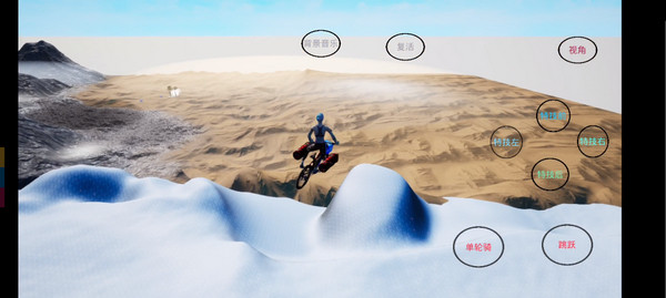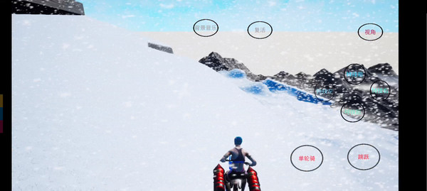 2、屏幕右侧设有不同按钮,均带有中文注释,如单轮骑、跳跃、向左、向右等,点击按钮即可做出相应动作。
