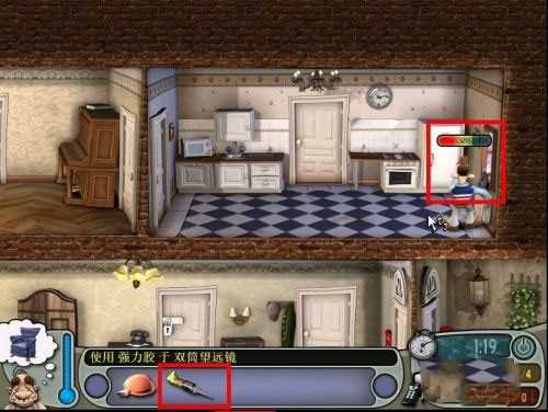 接着右侧窗户旁边有个望远镜,房间的主人拿着望远镜肯定没干什么好事,接下来将胶水涂在望远镜上,在涂抹的过程中,上方会有进度条显示,完毕之后赶紧闪人。