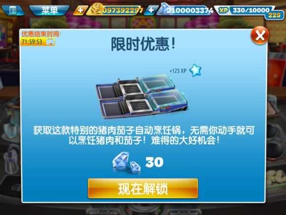 3、随着玩家不断解锁关卡,会得到更多新的食材和道具,也会越来越手忙脚乱。这里小编有一个小技巧分享给大家,很多客人会选择点套餐,而套餐中只要上了一个食物就可以增加顾客的等待时间,因此可以常备一些饮品,用于增加顾客的等待时间。