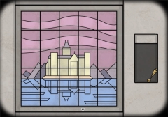 把这块【玻璃板】放到上面锈湖旅店的花窗,翻转花窗完成图案,得到【时钟指针】。