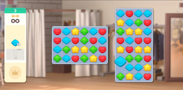 这是Project Makeover的核心玩法。在每个关卡中,你需要解决一系列类似糖果粉碎的谜题。通过交换相邻的游戏块,你必须在规定的步数内,形成至少三个相同图案的组合来消除它们,从而完成关卡目标。
