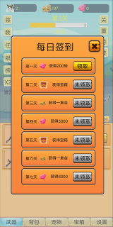 2、武器、装备、宠物等丰富系统,等待你来探索。即便离线,也能收获奖励,且离线奖励惊喜满满。