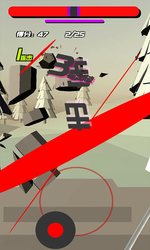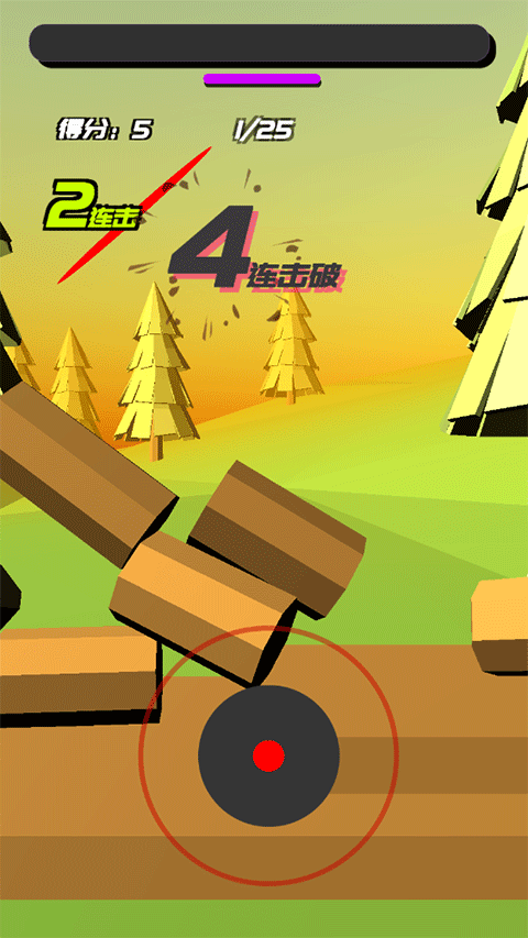 游戏里还会设置一些障碍,在木桩之中会混杂着几个小圆球,一旦砍到这些小圆球就会致使游戏结束,务必留意。