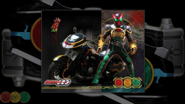 1、开启假面骑士ooo模拟器腰带界面,核心硬币已备好,点击就能将其放入硬币槽!