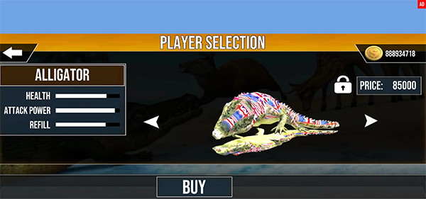 1、在网站上下载并安装游戏后,挑选一个模拟动物开始游戏,推荐选择鳄鱼。