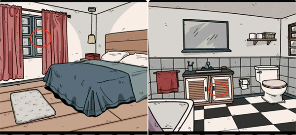 1、以卡丽莎的视角,首先留意卧室窗户上的符号(这些符号在房子的各个场景窗户上都有出现,后续会派上用场),随后在二楼卫生间的柜子里搜寻,找到一件收集物品。