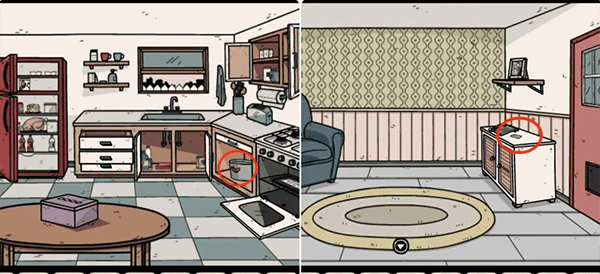 9、首先用火柴点燃厨房门口的蜡烛,然后根据两个视角下烤箱中饼干的提示,在卡丽莎视角下打开厨房里的盒子,获取汽车钥匙。之后,到外面取走已经点燃的蜡烛。