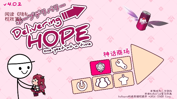 开发人员不支持hololive、COVER Corp或其任何人才,也不隶属于该公司。所有holopro人才版权所有2016 COVER Corp.