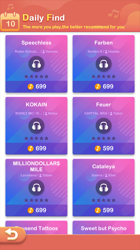 5、游戏每日都会推出大量新曲目,但玩家需消耗小影的音乐币才能进行演奏。