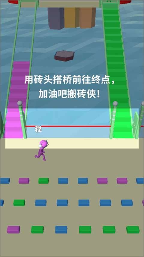 2、利用收集到的砖块搭建桥梁,以通往下一个平台,同时需确保他人无法抢占你的桥梁。你可以选择一次性收集足够数量的砖块来建造稳固的桥梁,率先抵达终点者将赢得胜利。