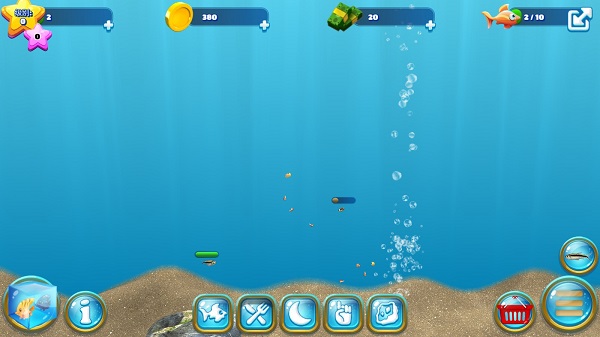 玩法来说,基本很简单,就是购买新品种,然后通过一系列的操作保持水族馆鱼类种类的丰富性!不过在这里,你需要勤换水,还需要添加过滤器保证水中氧气的供应。当夜晚降临,试着编辑灯光组,让水族馆里的鱼儿们能够在夜晚清晰可见,同时你也可以编辑背景,海量装饰品的丰富选择,满足你对养鱼的所有愿望。