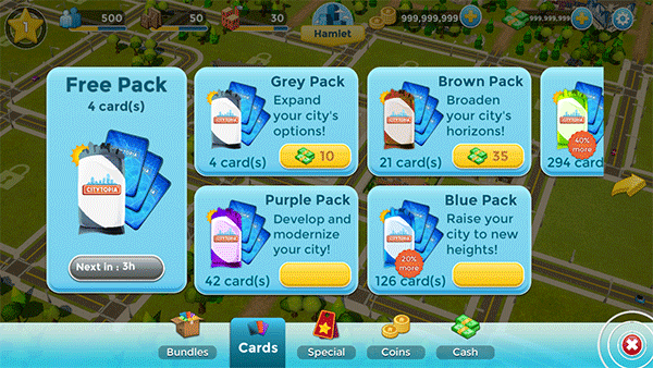 6、在商城中玩家还可以购买城市卡来建造更多有用的建筑来扩建你的城市
