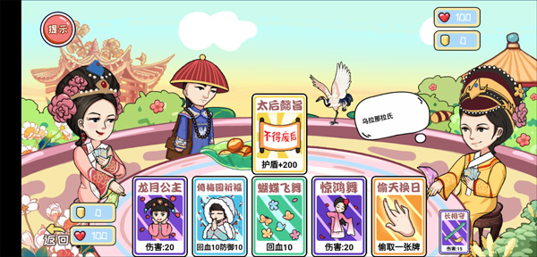 4、四阿哥和果俊王两张牌拖动合成圣母皇太后,发动大招即可通关。
