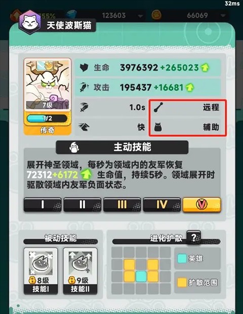 顾名思义,进化扩散可以提升周围英雄的战斗力,或破坏周围的障碍物。每个品质每个英雄扩散的范围是不一样的,我们以大家最开始获得的投手熊为例。