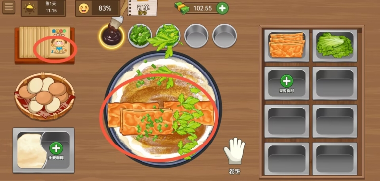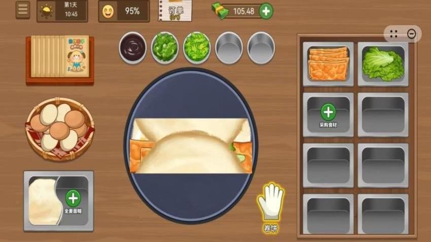 4、整体画面风格清新明快,角色的造型显得可爱且生动。煎饼制作过程中,细节展现十分丰富,各类食材所呈现出的效果极为逼真。此外,UI设计简洁直观,操作起来流畅舒适。