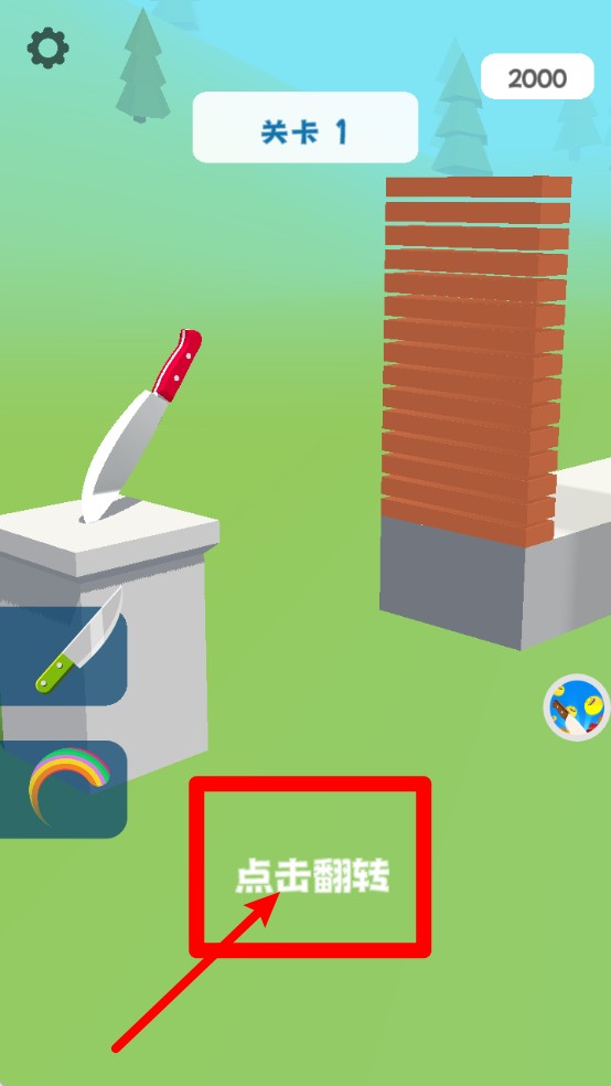 1. 关卡指令说明:点击画面下方的按钮,执行“点击翻转”动作,这是完成切割挑战至关重要的前置步骤。