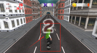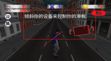 2. 通过左右倾斜手机来操控滑板,同时要留意分数与金币。