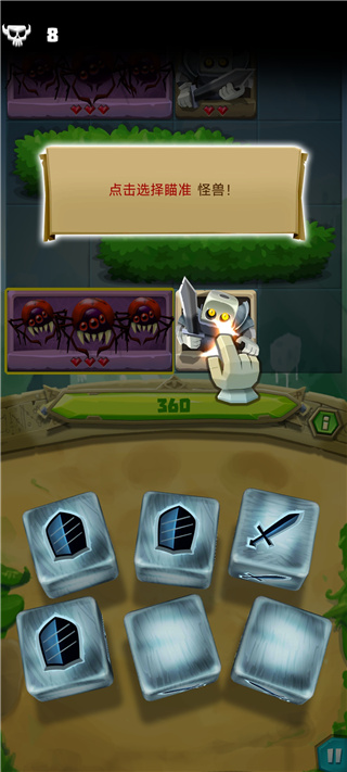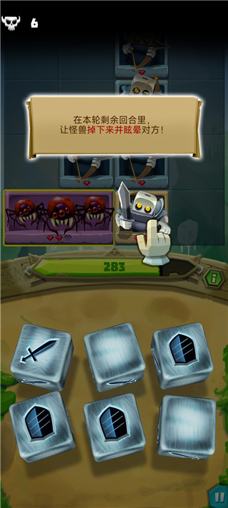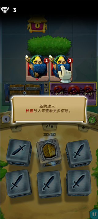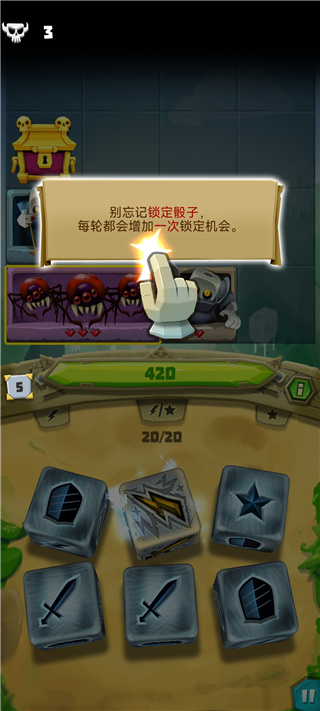 7、随着敌人数量增多,骰子会触发新技能,而盾牌能够吸收本轮敌方对你造成的伤害。