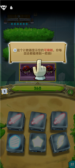 16、转动之后,能看到屏幕左侧有一个计数器,它用于显示玩家的可用锁数量,并且每个回合玩家都能获得一把锁。