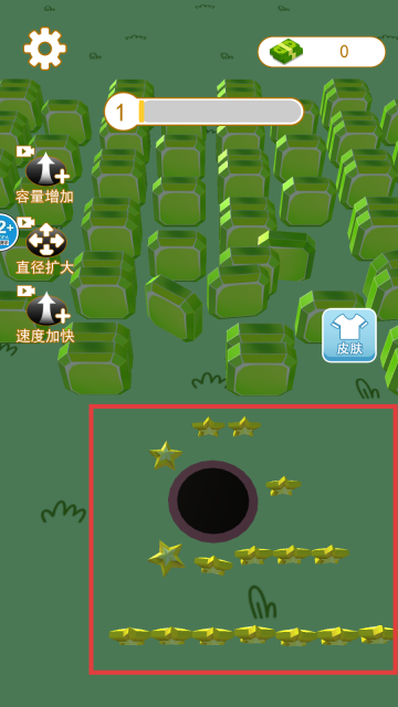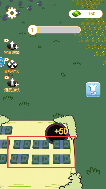 3、紧接着,等值的货币会出现在地面上,这时让黑洞将地面上的货币吞噬,便能快速积累财富,为后续的升级做好铺垫,从而使黑洞变得更加强大呢。