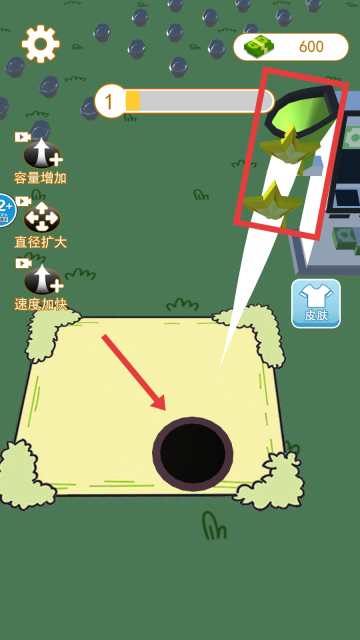 2、当黑洞吸入的宝物达到上限后,把黑洞移动至转换区,将吸入的所有宝物都转换成货币。