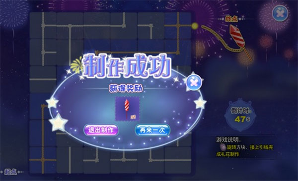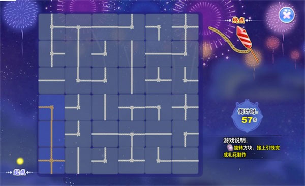 2、参与制作礼花的小游戏,连接好礼花的燃放线,成功完成游戏后就能获得礼花。