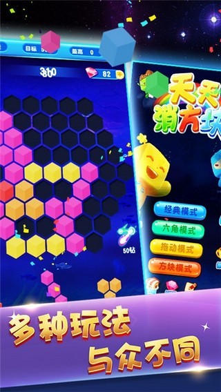 1、俄罗斯方块大师拥有精致简洁的画风设计与炫酷的宝石场景。
