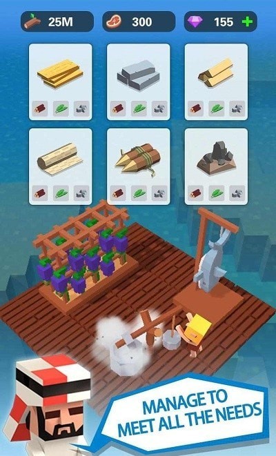 2.起初,玩家仅拥有一个木筏,其周边不存在材料与生存资源。玩家得去寻觅生存资源。