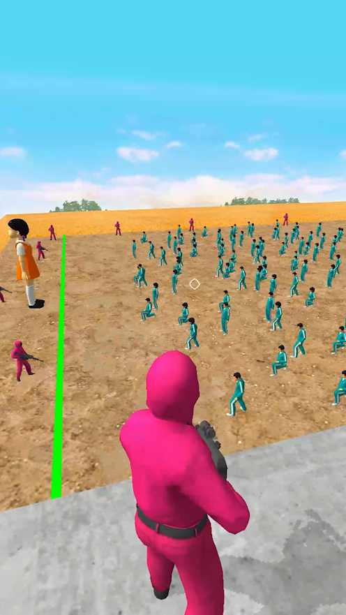场景中有一场类似《鱿鱼游戏》的活动,还有一个木头人,而你在其中扮演的角色是狙击手。