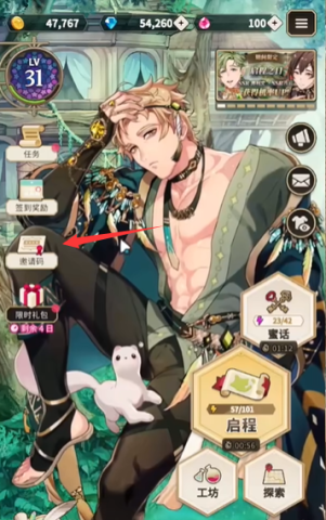 1. 开启游戏,接着点击左侧栏目里的【邀请码】。