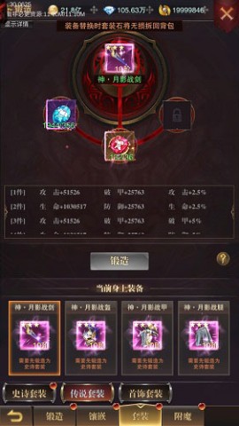 玩家能够把六阶橙色1星及以上的武器与防具,打造成史诗级套装。不仅如此,史诗套装还能进一步锻造成传说级套装!这无疑是提升战力的绝佳选择。