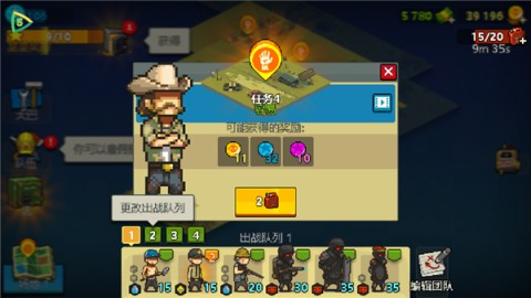 3、当观察到勇气点不断持续增加时,依据僵尸的阵容情况,挑选具备不同技能的队员投入战斗。