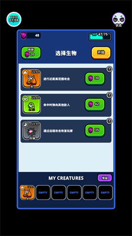 5、每当成功通过一关,你都能够在此处购买生物,助力你更顺利地持续闯关。