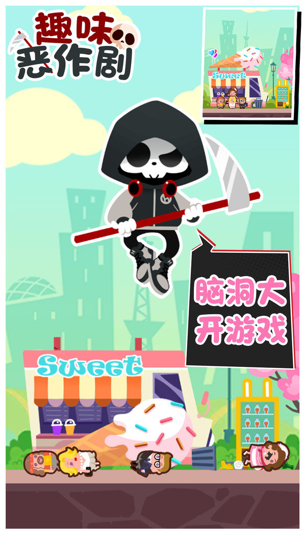 趣味恶作剧是一款拥有卡通画面的趣味闯关游戏。在游戏中,玩家将扮演死神,要在这个世界里制造形形色色的意外,收割更多灵魂,完成专属的神秘任务。游戏极具脑洞,乐趣十足。对这类游戏感兴趣的玩家别再犹豫,赶紧来体验一番吧!