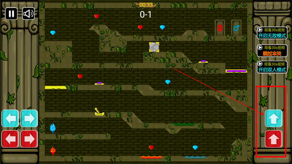3、需留意对人物的保护,火焰人务必避开接触水,而冰霜人绝不能碰到火。