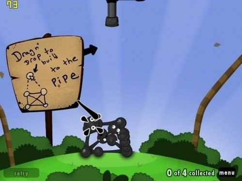 每一小关的目标均为收集至少特定数量的Goo到水管里。玩家需绞尽脑汁将建筑搭建至输油管口。