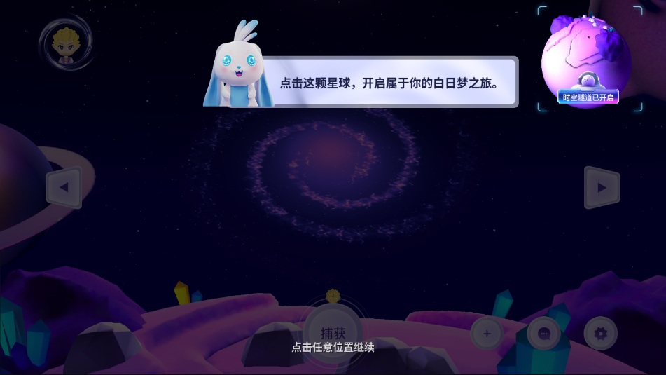 4、踏入时空隧道页面,即可开启自由探索之旅,完成各类任务还可获取奖励。