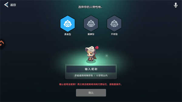 2、在选好性别之后,你还能够挑选自己的人物性格,并给自己取个名字。