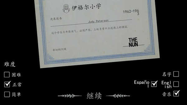 1当玩家打开游戏并点击“开始”,会发现屏幕左下角有难度选择区域。若未进行更改,系统将自动选定正常模式。但我建议大家在游戏前期,最好选择简单模式来练练手,因为即便简单模式,经过我亲自测试,难度也不容小觑。在屏幕右下角的名字处,若勾选,则需在上方的纸张处为玩家取名;若不勾选,系统会随机取名。待所有设置完成后,点击“继续”即可进入游戏。