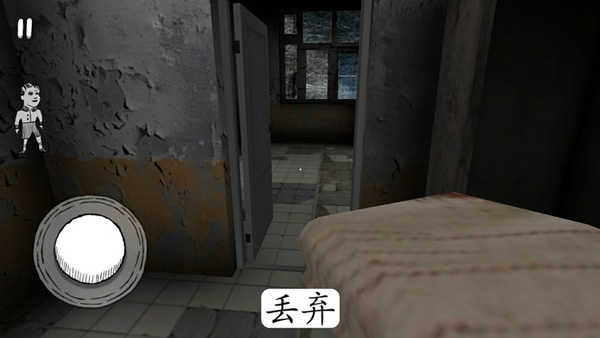 3、屏幕右下角是控制角色移动的操控摇杆,其上方的小人用于控制角色蹲起。在屏幕正中间,能看到一个小白点,通过滑动屏幕,借助它可进行拿道具、开门等操作。当小白点停留在可拿起的道具上,屏幕右侧会出现一只白手,点击白手就能拿起道具。拿起物品后,屏幕下方会出现丢弃图标,不想使用该物品时,点击丢弃即可。切换新物品时,手中的旧物品会自动丢在地上。