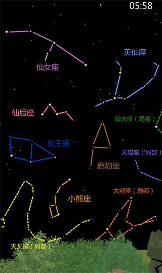 可收集(共6个):仙王座、仙后座、仙女座、鹿豹座、小熊座、英仙座。