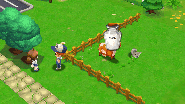 2、在这片土地上,玩家能选择治疗猪仔、挤牛奶、烤蛋糕等一系列活动,收获赚取的金币后,可用其开垦更多田园。