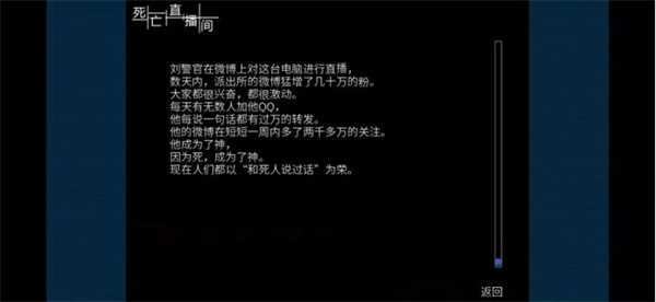 3、尽管剧情里频繁提到“死亡”,字里行间仿佛弥漫着些许阴暗与沉重之感,然而事实上,这款游戏并未刻意去营造恐怖氛围。它反倒更像是一则关乎生命、人性以及选择的寓言,借助“死亡”这一独特的切入点,促使玩家对生活展开思考,所带来的并非恐惧,而是深深的触动。