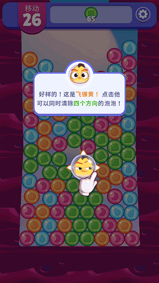 2、上方带有数量和颜色的泡泡,这些是玩家需要完成的任务。而下方的小鸟则是强力的道具。