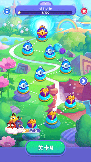 1、第一步,打开愤怒的小鸟梦幻爆破的最新版本,玩家能够通过点击相同的泡泡实现消除。